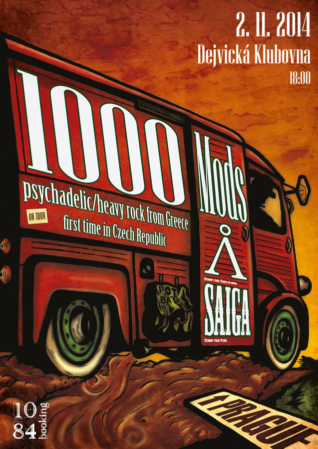 Milovníci slunce, dálek, výšek, dodávkových výletů, stonerových groovů, tučných riffů a vyfuzzovaných aparátů s hlasitostí daleko přes desítku se přijdou v listopadu trochu ohřát do Dejvické Klubovny. Do Prahy poprvé dorazí řečtí 1000mods, vydatně podpoření dvěma nadějemi českého stoneru : českokrumlovskými jezdci Λ /Lambda/ a česko-ruskou exilovou našláplostí Saiga. Řekové v Klubovně představí své nové album Vultures (2014), navazující na úspěšný a ověřený kousek Super Van Vacation (2011).