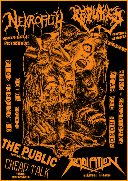 REPUKED /Stockholm, Švédsko/ - štipľavý death metal s nechutnou lyrikou ovplyvnený kapelami Autopsy / Abscess, Pungent Stench alebo GG Allin. Vonku 2 albumy na Soulseller records, 7"ep "Nunc Est Bibendum" a split 7"ep s Haemophagus, v príprave split s Bonesaw. Aktuálne sa vrátili z turné po západnej / južnej Európe v spoločnosti Entombed a Grave. http://repuked.bandcamp.com/ https://www.facebook.com/pages/Repuked/132754393430493