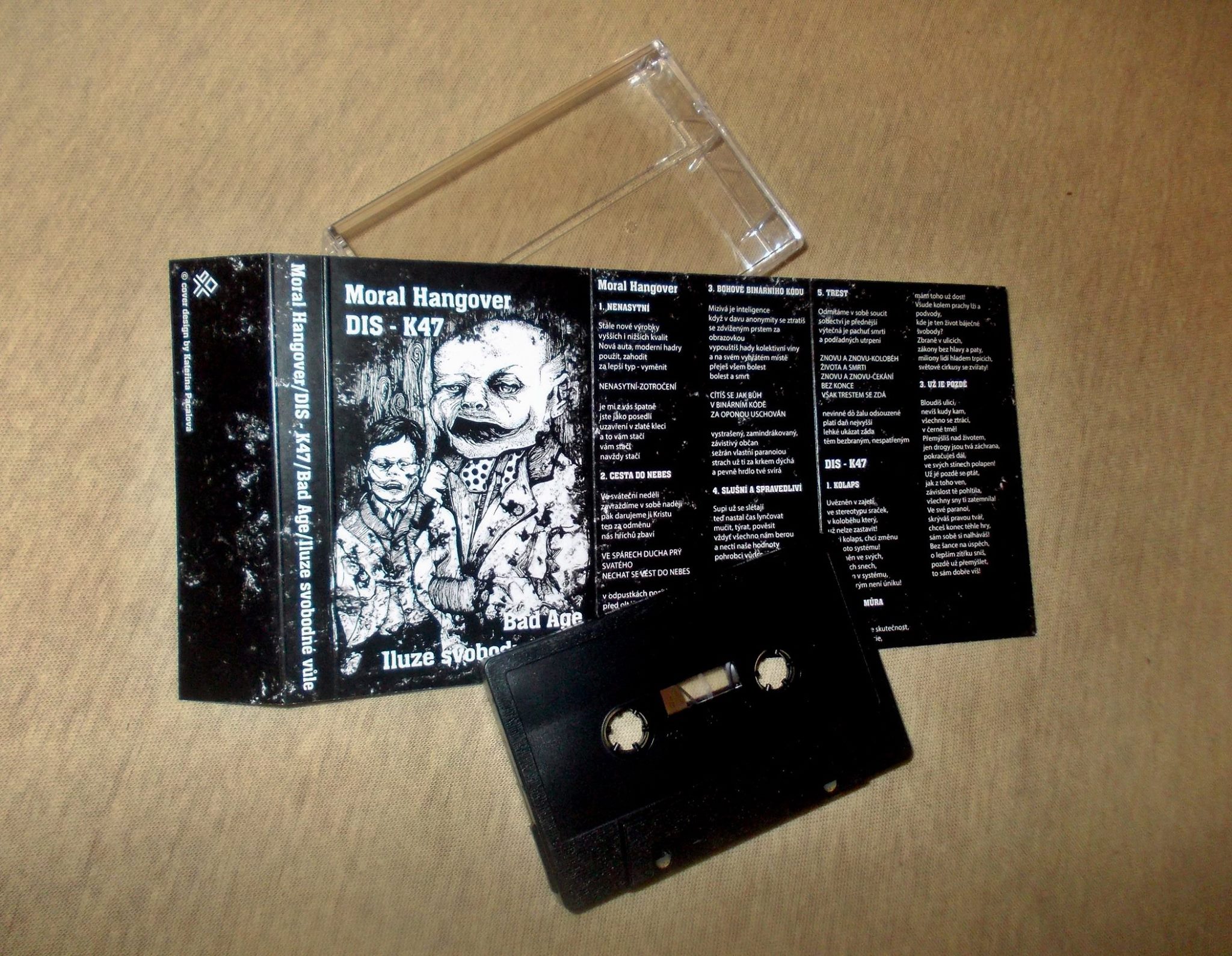 O víkendu vyšla 4 way split kazeta moravských DIY punk kapel Moral Hangover, Dis-k47, Bad Age a Iluze svobodné vůle. Náklad 120 kusů, k dostání u kapel za 90 Kč. Ukázky k poslechu na kapelních bandzone profilech.