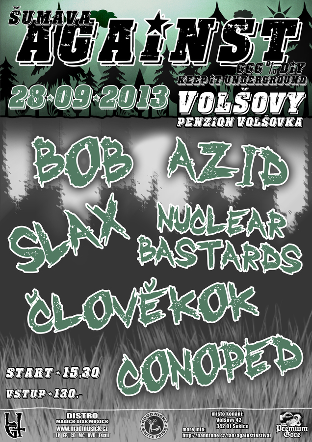 5.ročník šumavského minifestu AGAINST (Bob, Člověkok, Conoped, Azid, Nuclear Bastards, Slax a další)