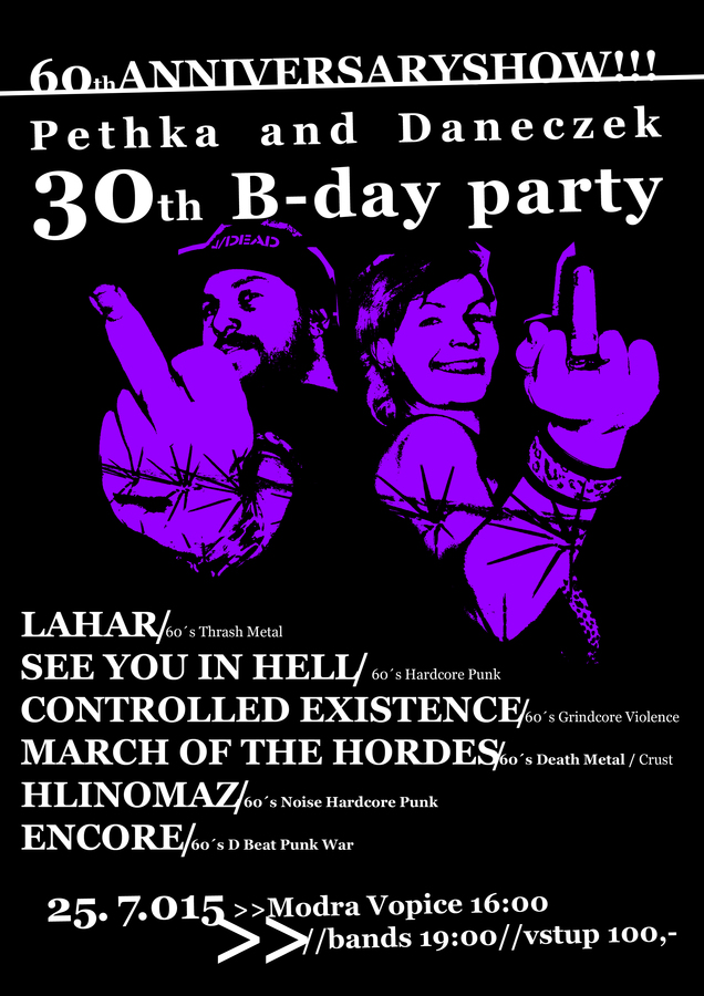 My dva z plakatu,Pethka a Daneczek to letos doklepem do 30....a rozhodli jsme se pojmout prechod do treti dekady ve velkem stylu. Line-up se nam povedl tak koukejte vsichni dorazit a zakalit s nama!