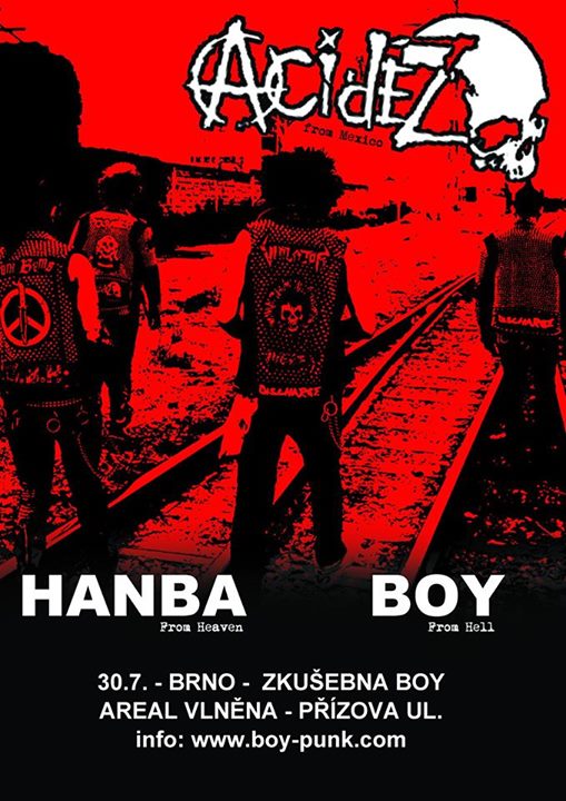 Kdo má vážný zájem se na koncert podívat ať nám píše e-mail na: info@boy-punk.com a jako předmět uveďte: ACIDEZ NA ZKUŠEBNĚ.