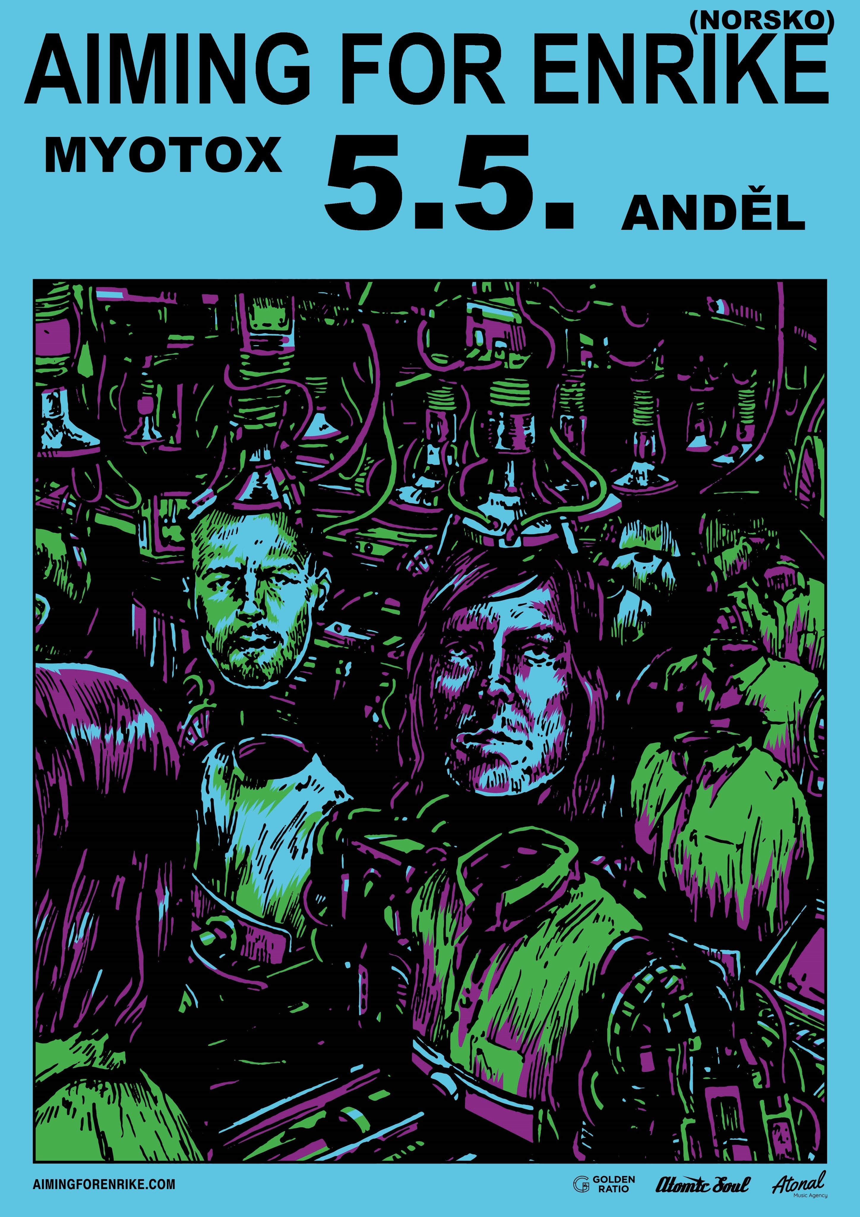 AIMING FOR ENRIKE (Norsko) noise / math / post punk https://aimingforenrike.bandcamp.com/ https://www.aimingforenrike.com/ Výbušné duo z Norského Osla vytváří nesmírně vzrušující, ekcentrický vesmír pouze ve dvou. Ano, jedny bicí, nespočet vzájemně propojených zesilovačů a loopovacích a efektových pedálů. Jazz, noise, post punk, math rock a funk. Dobrodružné, energetické, taneční a hlavně inovativní! Na kontě 4 alba, jedno lepší než druhé a prostě wow! Z toho se nepo jen fanoušci výše zmíněných žánrů, ale každý hledač originálních přístupů k tvorbě hudby. https://www.youtube.com/watch?v=LH1KNXXSRPo https://www.youtube.com/watch?v=YCrIxcrS_yA https://www.youtube.com/watch?v=hGmruJ_uzto MYOTOX alternative / post rock http://bandzone.cz/myotox https://soundcloud.com/myotox Rádi dáváme příležitost mladým a samozřejmě nadějným kapelám. A Myotox jsou jednou z nich, jsou z Plzně a mají dokonce saxofon což je dost netradiční nástroj mezi podobnými kapelami. Ikdyž... Svůj žánr na webu popisují jako post rock, ale víc mi z toho vychazí něco jako alternativní crossover nebo tak něco. https://www.youtube.com/watch?v=a_Yn76uJK-c https://www.youtube.com/watch?v=9TXYuncxqss