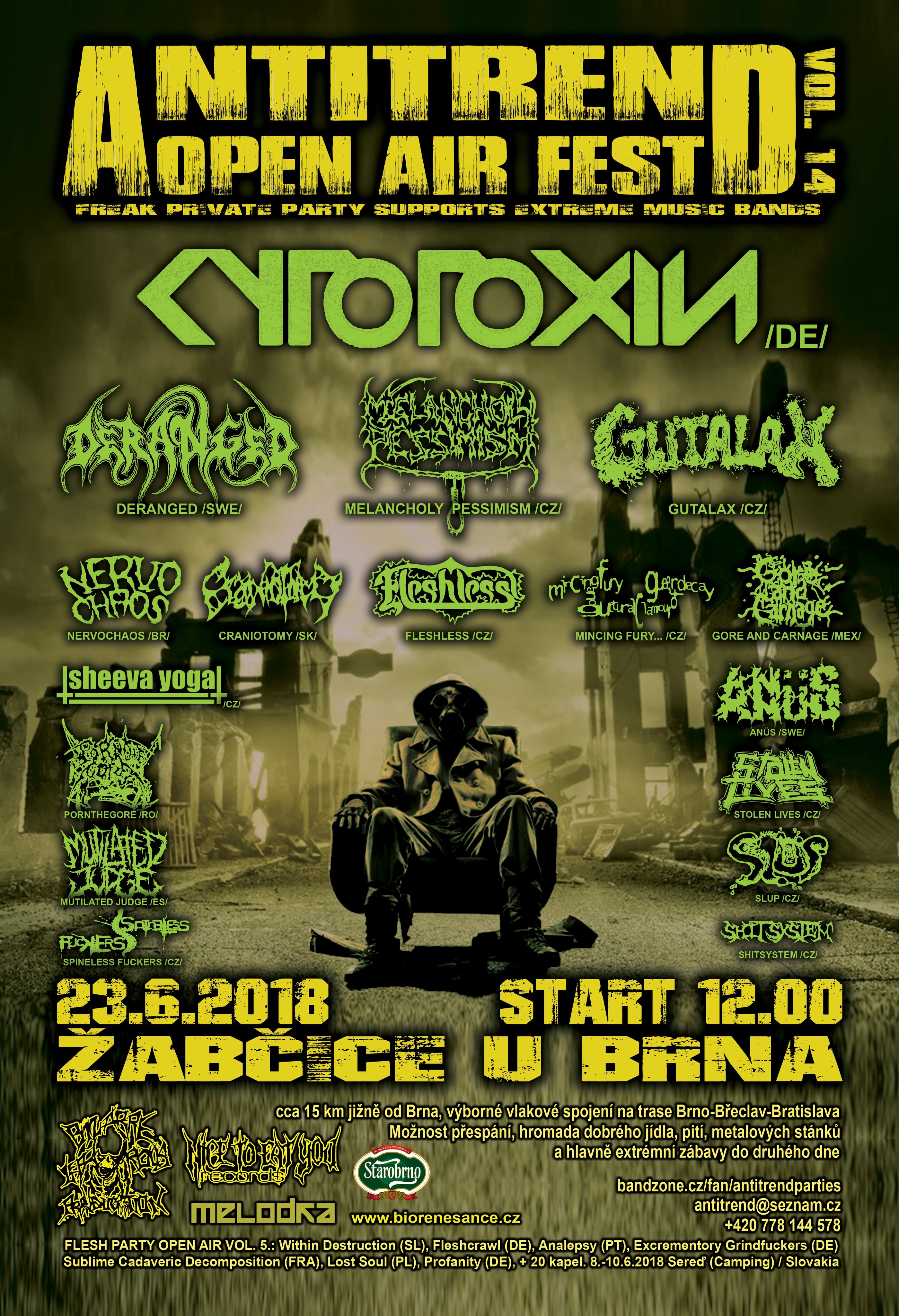 CYTOTOXIN (GER), DERANGED (SWE), GUTALAX, FLESHLESS, MELANCHOLY PESSIMISM, MINCING FURY, CRANIOTOMY (SK), GORE AND CARNAGE (MEX), NERVOCHAOS (BRA), SHEEVA YOGA, ANUS (SWE), MUTILATED JUDGE (SPA), PORNTHEGORE (RO), STOLEN LIVES, SPINELESS FUCKERS, SLUP, SHITSYSTEM