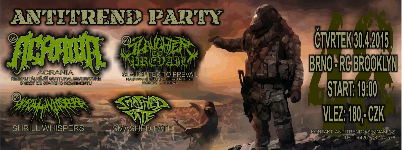 Acrania (UK - Unique Leader Records), Slaughter To Prevail (RUS), Shrill Whispers (SK), Smashed Fate (CZ)