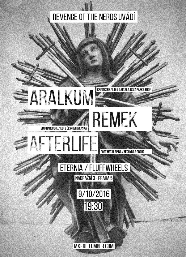 ARALKUM: lidi z Rosa Parks, Gattaca a Empty Hall of Fame a jejich hardcore crust ve stylu Masakari nebo From Ashes Rise. venku mají kazetu se čtyřpísňovým demem a tohle je první koncert v praze