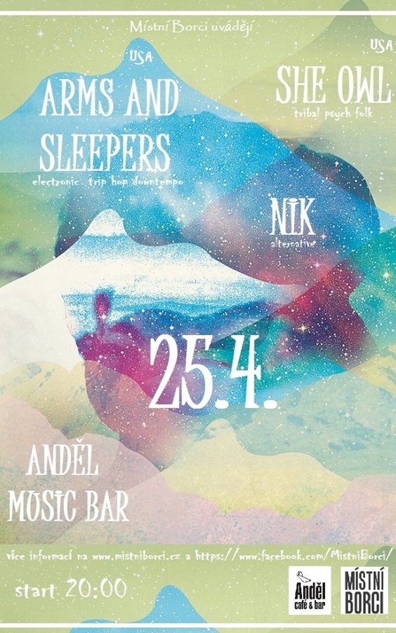 Arms and Sleepers už více jak deset let tvoří Bostonské duo Max Lewis a Mirza Ramic. Za tu dobu vydali 20 různorodých desek, spolupracovali s uznávanými osobnostmi (Tom Brosseau Z Fat Cat Records, Philip Jamieson z Caspian nebo Ben Shepatd z Uzi & Ari), pracovali na mnoho remixech (Caspian, Helios, Ef,…) a tvoří hudbu k filmům a pro různá média (např. Vice). AAS mají skutečně široké rozpětí a jejich hudbu de zařadit někam mezi post rock, trip hop, downtempo nebo instrumental hip hop. Poslední deska Swim Team, které je i věnované evropské tour je nostalgicky ovlivněná 80. lety a recenze říkají, že je jejich nejdynamičtější nahrávkou a naživo se tak můžete těšit na melancholicko-taneční set, kdy dostane prostor jako nová deska, tak i starší, prověřený kousky. A aby atmosféra byla ještě lepší, tak si to AAS postaví přímo pod podium mezi vás a dá Ti tak nahlídnout až do kuchyně a umocní už tak očekávaný zážitek!