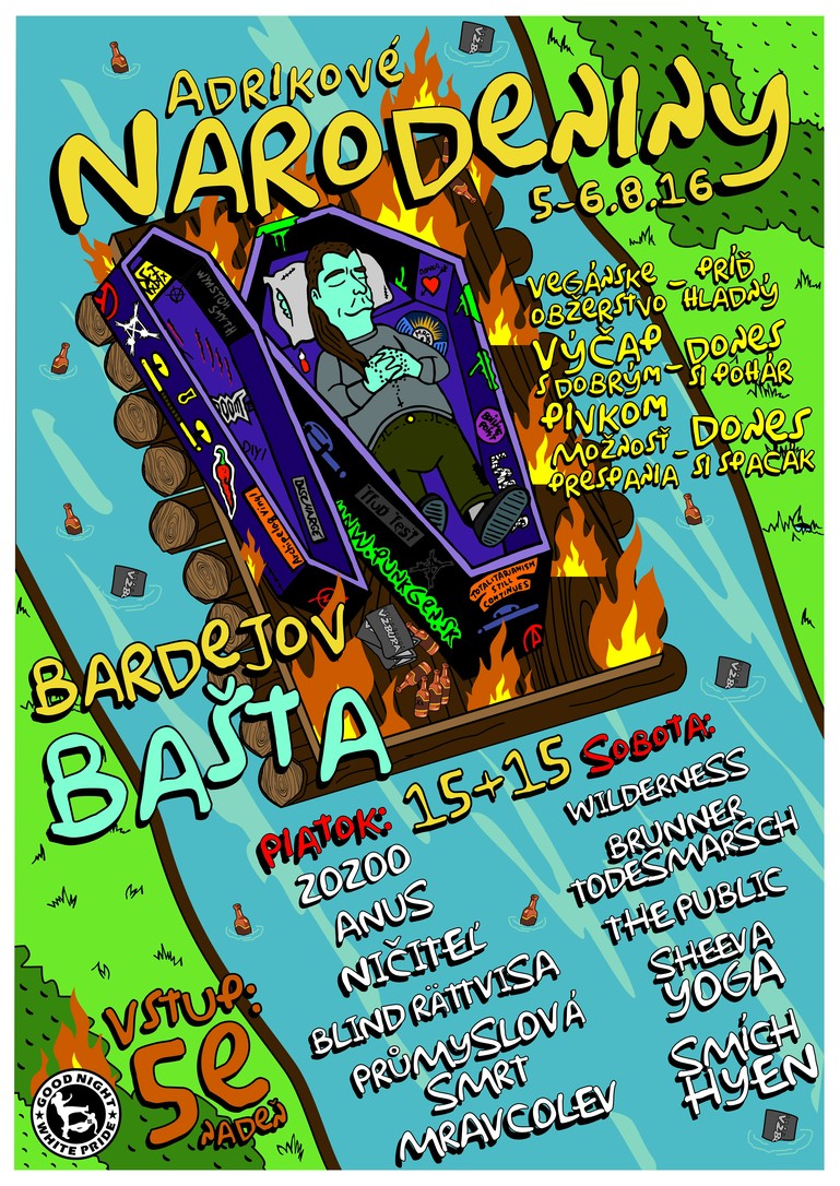piatok: ZOZOO (SK), ANUS (SK), NIČITEĽ (SK), BLIND RATTVISA (SK), PRŮMYSLOVÁ SMRT (CZ), MRAVCOLEV (SK) sobota: WILDERNESS (SK), BRUNNER TODESMARCH (CZ), the PUBLIC (SK), SHEEVA YOGA (CZ), SMÍCH HYEN (CZ)