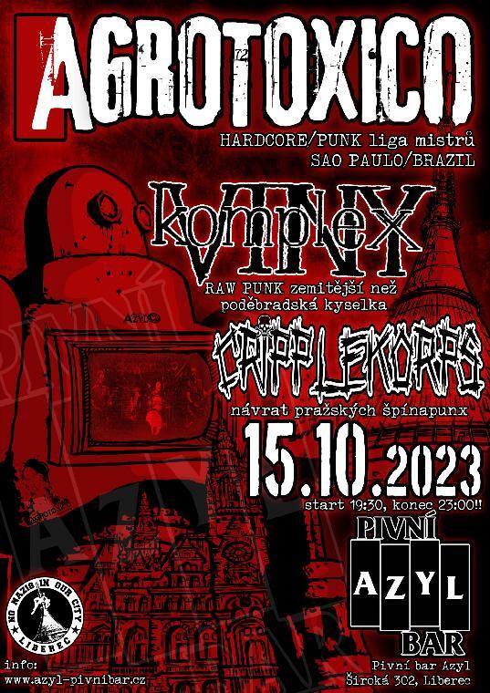 Dnes už legendární brazilskej hc/punk AGROTÓXICO (since 1993) ze Sao Paula se po nějaký době opět vrací do ČR. V Liberci zahrajou po jeho boku lázenští punks KOMPLEX VINY a obnovenou premiéru si střihnou dlouho živě nevystupující CRIPPLEKORPS!