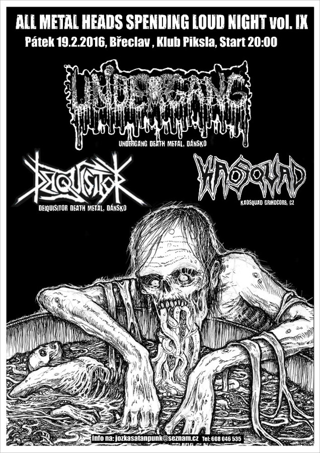 Dánský UNDERGANG se v Břeclavi představí již podruhé. Kosti drtící death metal, v kterém můžete zaslechnout satanský death metal kapel jako Incantation, Immolation, stejně jako staré finské kapely Demigod, Demilich či doom/death kapely jako Winter, Dusk. Čekej nekompromisní death metal s hnilobně chorobným zvukem a nelidsky záhrobním vokálem. Osobně považuji jejich vystoupení v Břeclavi za jeden z nejlepších koncertů, co jsem kdy viděl, takže je rozhodně na co se těšit.