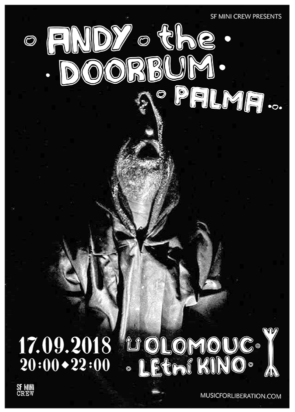 Šaman z Los Angeles ANDY THE DOORBUM se po více jak roce vrací do Olomouce. Loňský koncert proběhl ještě ve staré bajkazylu na Wurmovce. Atmosféra to byla silná. Jeho muzika a performance je výkladem zrození, života a smrti.
