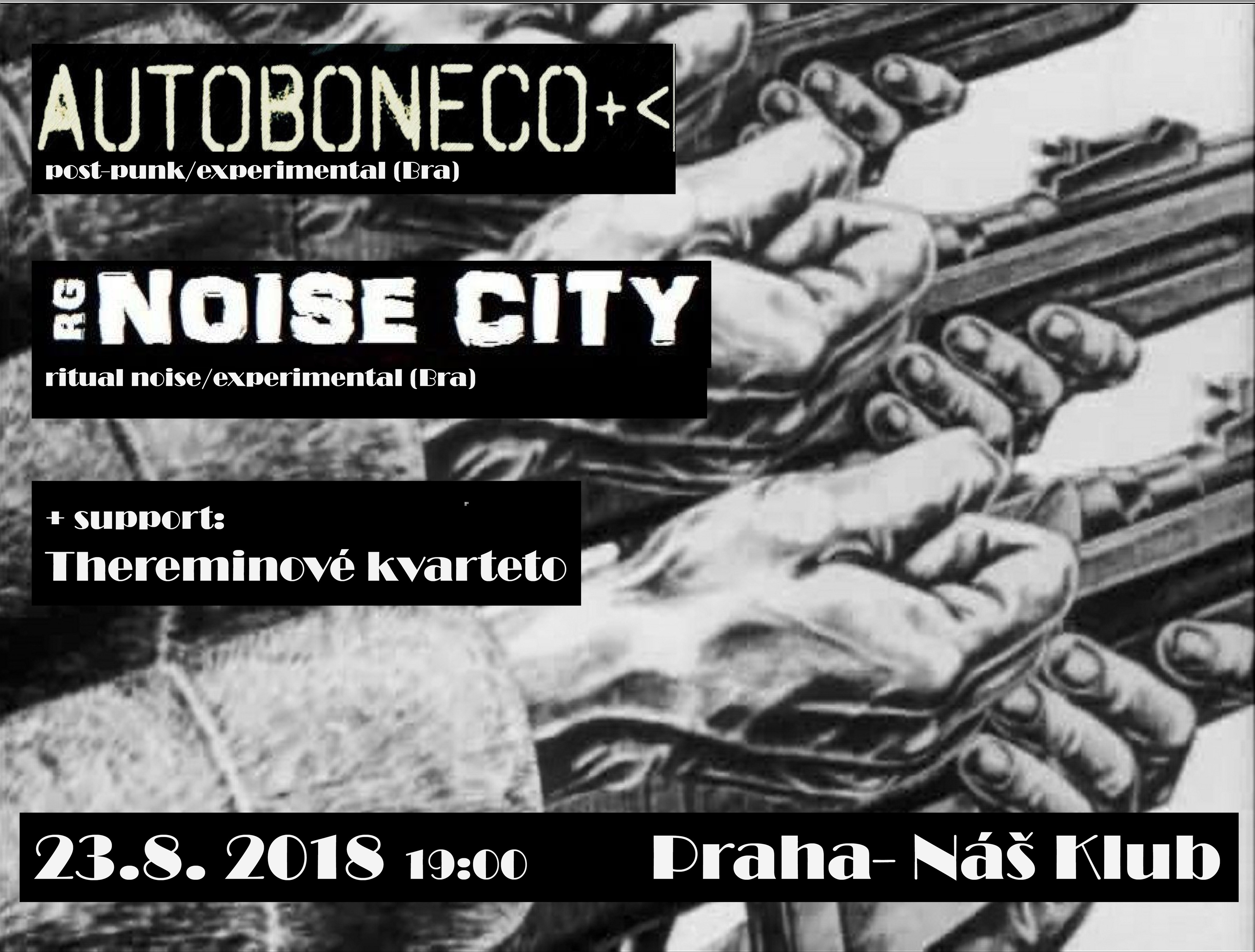 AUTOBONECO+< - brazilské experimentální uskupení již 25 let bobtnající v jihoamerickém undergroundu, hudebně jsou rozkročení od lehce schizoidního folku po klasický post-punk, chvílemi obohacený o experimentální prvky. Poprvé v Evropě!