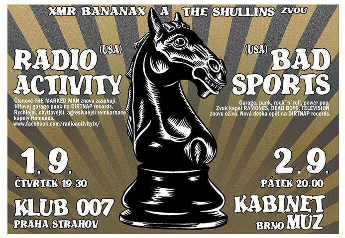 Texasští BAD SPORTS právě vydali na Dirtnap records nový 12" nazvaný "Living With Secrets", který odráží znatelný posun v soundu kapely. Tentokrát dominuje temnější nálada a celková vyzrálost a lehký odklon od power popových melodií. Celá deska k poslechu tady. V BAD SPORTS najdeme současné dva členy RADIOACTIVITY (druhá půlka je složena z členů THE MARKED MAN) a obě kapely budeme mít možnost tentokrát vidět i na dvou zastávkách u nás: 1.9. Praha - 007 a 2.9. Brno - Kabinet Múz.