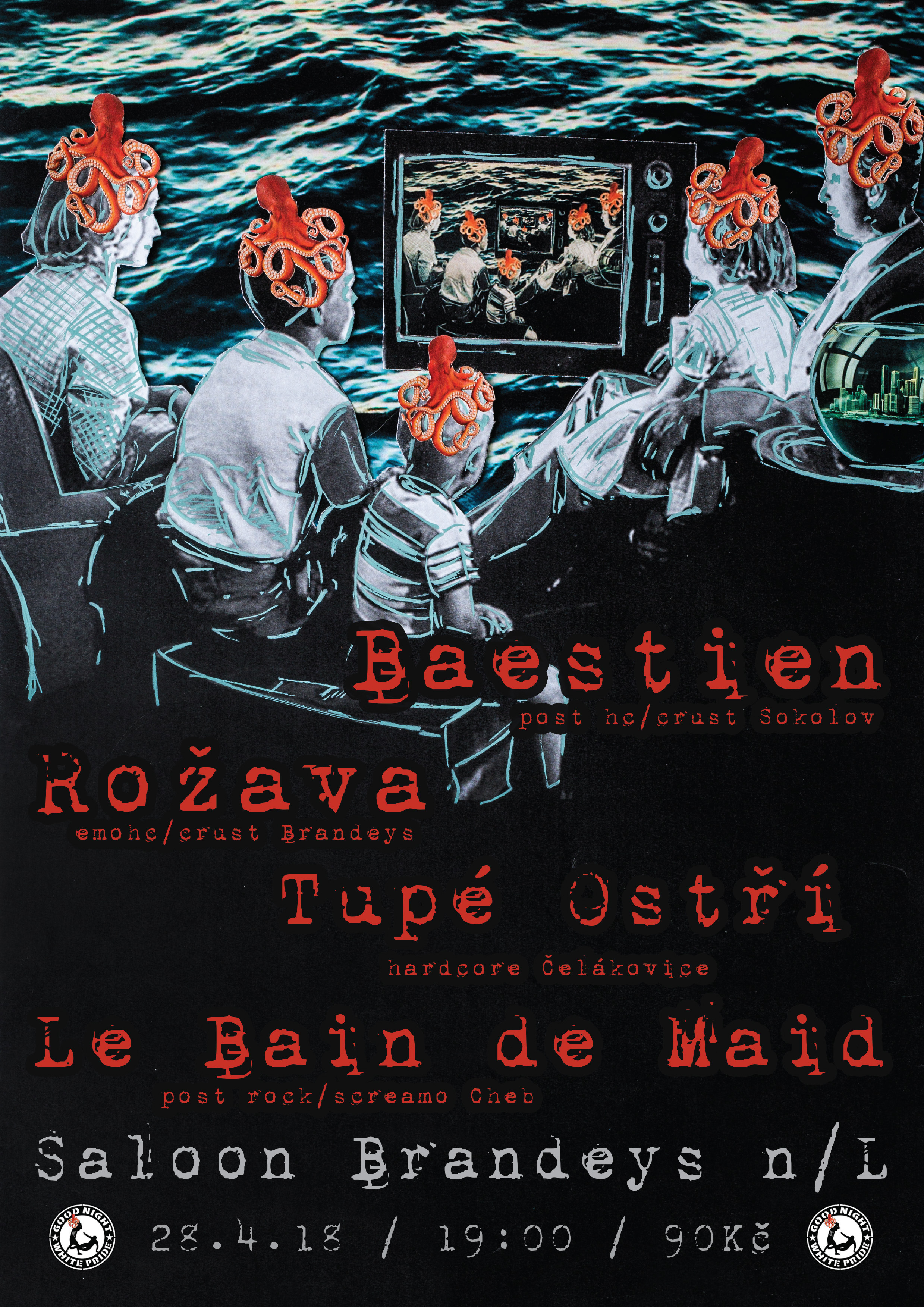Le Bain de Maid - další západočeská kapela, tentokrát z Chebu. Vidět a slyšet jste je mohli loňský září na mini festu, kterej dělal Poďous v letnim kině v Lysý nad Labem. Jelikož se jejich tesknýho a ukřičenýho screamo/post rocku, kterej tě zvedne ze židle, prostě nemůžem nabažit, bylo jasný, že na týhle akci "Lebaini" musej zahrát.