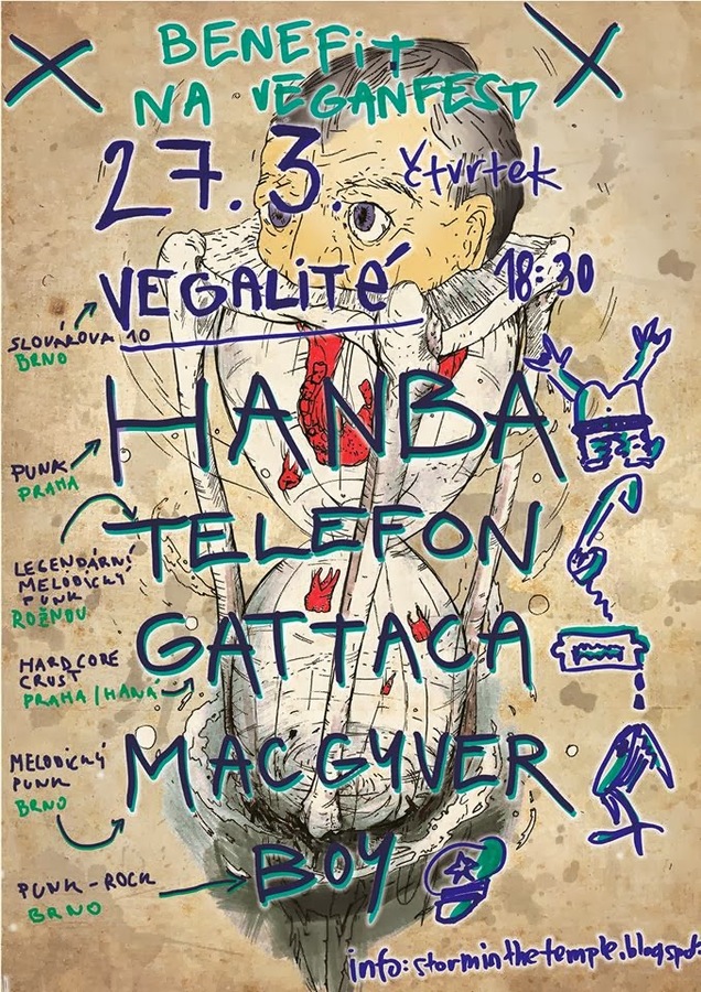 Myslíme, že byste taky mohli někdy ven! Facebook je sice fajn, ale kazí trochu sociální vztahy ne? Podívej - koncert končí v jedenáct, takže budeš brzo doma. Bude to benefice na VEGANFEST. A do třetice nebudeš smrdět, páč se na koncertě nebude jako dycky kouřit! To je deal ne?