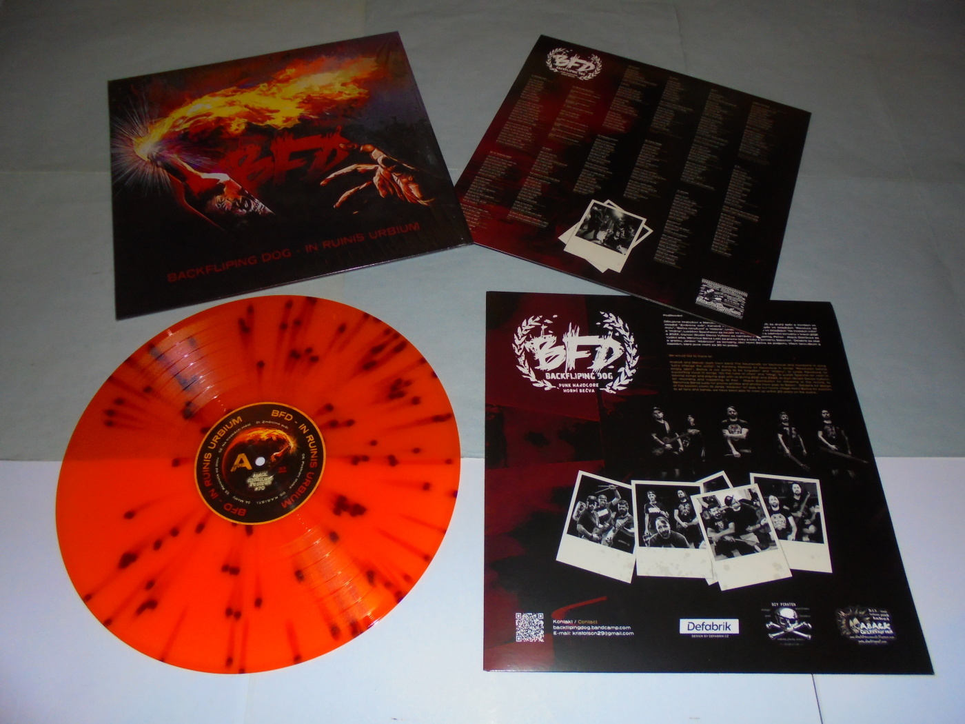 Ke dvacetiletému výročí kapele BFD z Horní Bečvy vychází po letech oficiální album ,,In Ruinis Urbium - V Troskách Měst", solidně rozjetý hc/punk obsahující dvanáct skladeb s objektivitou textů pojednávajících o životě a světě. V muzice nechybějí vyhrávky se sborovými zpěvy různých hostů, trombónu a především houslemi, které to celé hezky ucelí a dají tomu jednotný až netradiční způsob originality, jenž hezky zapadnou do celého konceptu nahrávky s kvalitním zvukem ze studia Davos, v tomto hudebním světě má přeci punk hodně podob a tohle je jedna z nich. Po grafické stránce se nám nabízí promakaná kresba obalu v podaní hned několika barev, která je do očí bijící, musím uznat, že kapela za dlouho dobu existence rozhodně udělala velký krok dopředu ve vlastní prospěch, vychází v barevném provedení na lehce průhledném, oranžovém vinylu s fialovými cákanci a jako vždy limitovaná edice - žádná není, všechny desky jsou limitovány, zafoliovány v počtu 520 kusů. Poslech jedné skladby je možný na profilu labelu, nebo kompletní nahrávka je na bandcampu kapely. Více informací je na odkazu Aback Distribuce, vydavatelství.