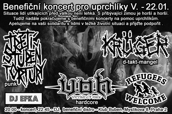 Situace lidí utíkajících před válkou není lehká. S přibývající zimou je horší a horší. Tudíž nadále pokračujeme s benefičními koncerty na pomoc uprchlíkům. Apelujeme na vaši solidaritu s lidmi v težké životní situaci a přijďte podpořit .