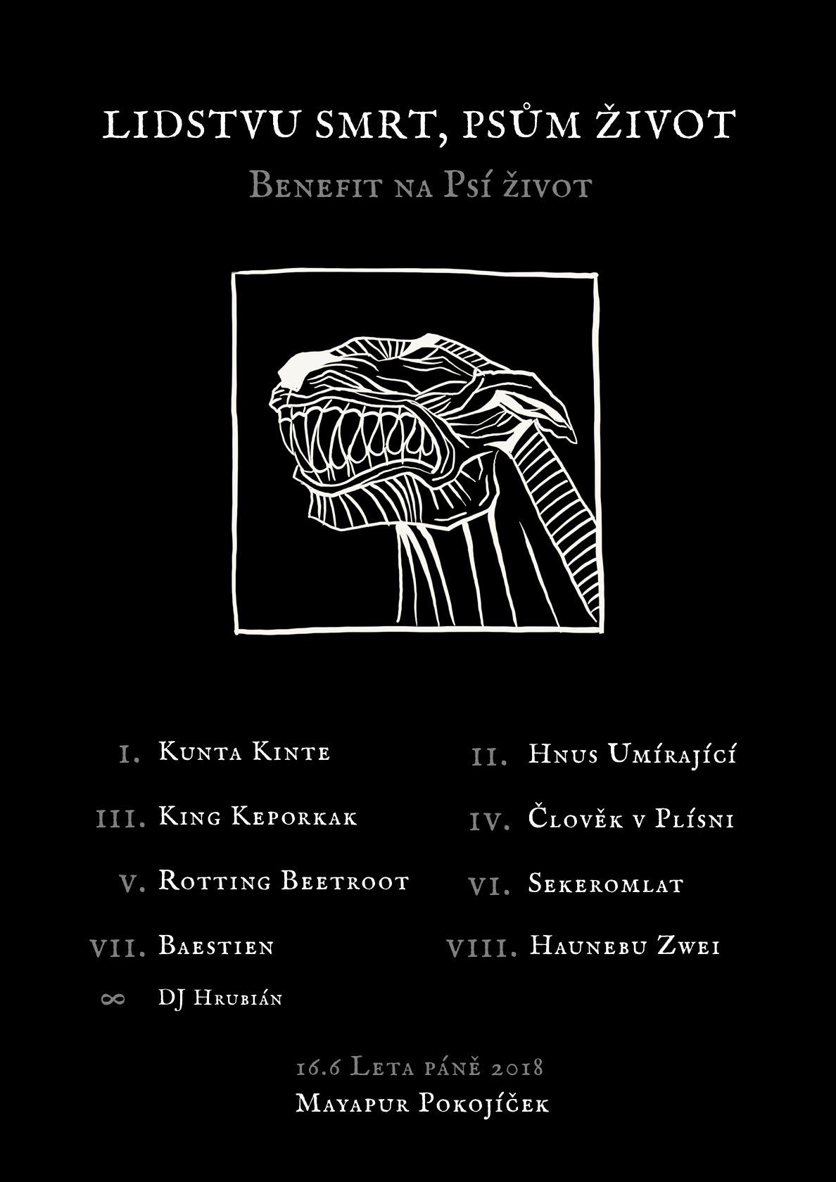 Výtěžek ze vstupného jde na organizaci Psí život (viz. výše).