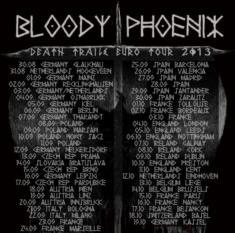 BLOODY PHOENIX (USA) - Ke dni 30. 8. Startuje další Evropské turné - rujnovat pódia u nás již vcelku známá likvidační grindcore jednotka načáchlá crustem / d-beatem s novým, třetím 12" LP vycházející k turné ve spolupráci 4 Labelů ze světa. Mají tu 4 koncerty s jedním Slovenským. První koncert na domací půdě se uskuteční v Neděli 8. Září v Liberci v příjemném AZYL BARU (na místo Polska). Kapela se představí v čele se starší sestavou.