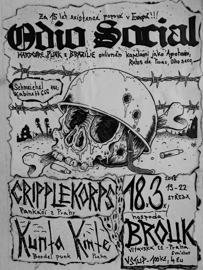 ODIO SOCIAL ( HC-Punk jízda/ Bra ) - brazilská HC banda, založená v roce 2000. Jde o vinikající kapelu, která v současné době tvoří novou vlnu hard core scény. Mezi kapely, které ovlivnily jejich zvuk, patří HC punk smečky jako Olho Seco, Ratos De Porao nebo Agrotoxico, ale v některých skladbách je patrný tvrdší vliv grind core a thrash/crossover.Jediným stále aktivním zakládajícím členem je v současné době Leonardo, ale po dlouhém období mezi lety 2006 až 2010 se do kapely vrací Blx. Sestavu doplňují Fabio ( Sistema Sangria, Hardcaos Discos ) a Douglas ( Massacre Em Alphaville, Ravolucao do Kaos ).