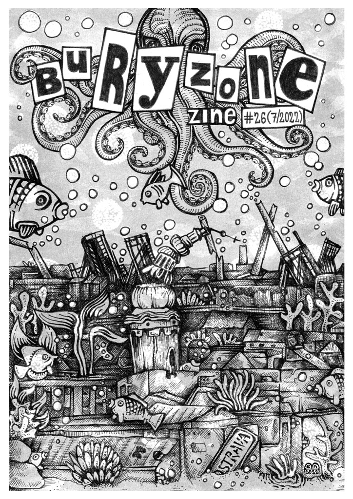 Právě vyšlo 26. číslo BURYZONE zine, které je zároveň malou oslavou pětadvacetileté existence zinu. V něm se nachází na 146 stranách formátu A5 rozhovory se SANGRE DE IDIOTAS (grindcore / SVK), STRES TANEC (garage emopunkcore), ILLEGAL ILLUSION (alternative rock), LEMONHEART CLUB (noise/sludge), BASTARD INSTINKT (crust/grind), MARNE (crust/punk) a mini-info-rozhovory s PRISON OF MY LIFE (melodic death / SVK), ENNOIA (deathcore), SYSTEM DESTROYER (grindcore / ARG), PURITY (death metal) a BERATED (grindcore / USA). Rovněž byli vyzpovídání zástupci osmi tuzemských podzemních tiskovin, jmenovitě Pařát metalový magazín, Ohníček zine, Parambucha zine, Telepatie magazín, Noise Master zine, Garfweek recyklátor, Go And Kill zine a Kids And Heroes zine. Dále jsou zde tour reporty MARNE & INTERPUNKCE tour 2021, IMPULSEALER & TRIGGER tour 2022 a SUBLIME CADAVERIC DECOMPOSITION / GUTALAX / BOWELFUCK tour 2021. K tomu rekapitulace 25 let Buryzone zine, anketa na téma “Co tě sere na vinylech?“ a samozřejmě recenze na ziny, filmy a nahrávky. A v neposlední řadě jsou na titulní i zadní straně obálky opět perokresby od Bena. V blízké době k dostání u spousty distributorů nebo osobně na festivalech Obscene Extreme (Trutnov, 13. - 16. 7. 2022), Festa De La Pohoda (Vodňany, 30. 7. 2022) či Vzdor Festu (Hostašovice, 26. – 27. 8. 2022). Nebo na níže uvedeném kontaktu za 130 Kč (+ poštovné). Více na buryzone@seznam.cz nebo BZ/buryzone.
