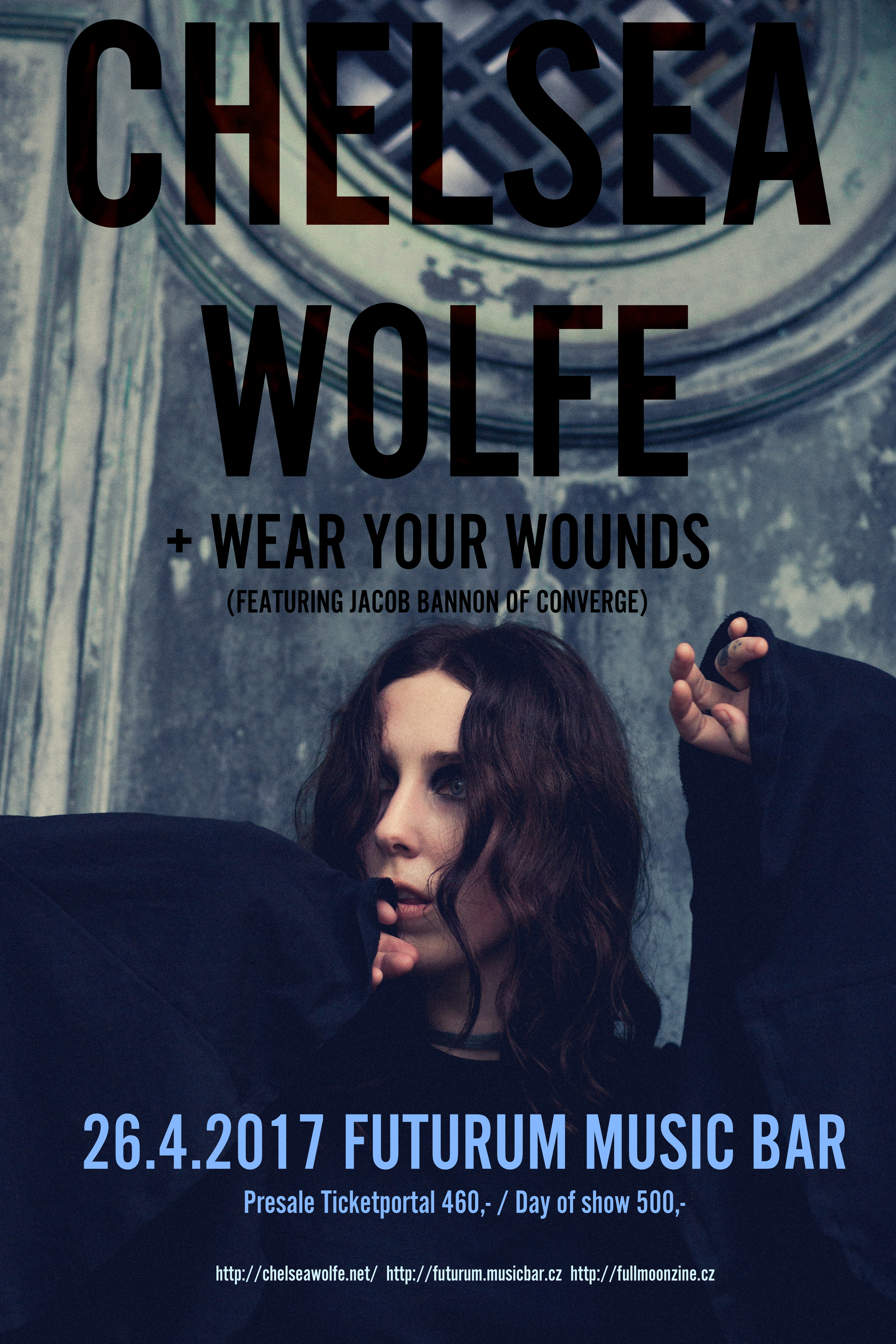 http://chelseawolfe.net/ facebook.com/cchelseawwolfe facebook.com/wearyourwounds/ http://futurum.musicbar.cz/ http://www.ticketportal.cz/ http://www.odysseybooking.com/ http://www.fullmoonmagazine.cz/