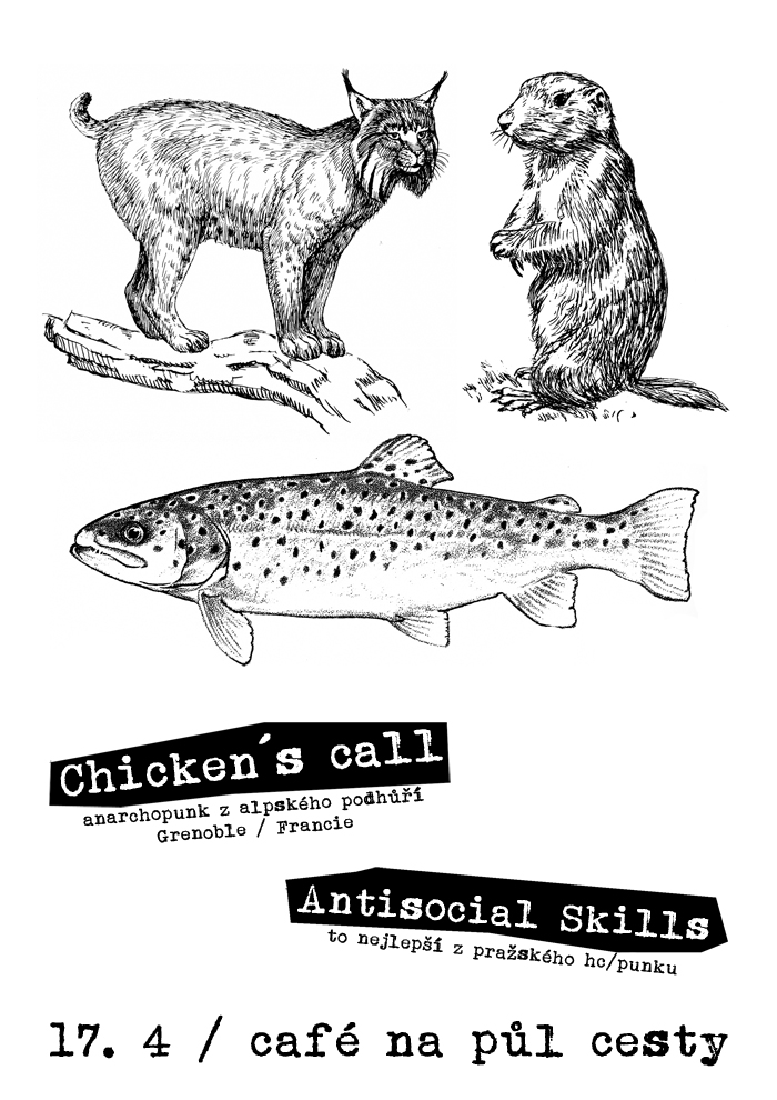 Chicken´s Call - francouzská anarchopunková kapela, která funguje již od roku 1998. Za sebou mají turné po celém světě včetně Japonska, Brazílie, Argentiny či Nového Zélandu, ale Praze se doteď vyhýbali. Kapela má základnu v Grenoblu, což je město se silnou punkovou scénou. Očekávej melodický hardcore punk v duchu La Fraction.