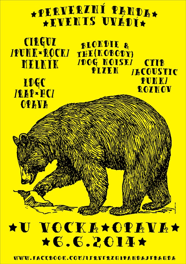 Příští týden, konkrétně 6.6., bude v Opavě v baru/klubu U Vočka opět živo. Večer bude ve znamení rozličných stylů, což ale podle pořadatelů z Perverzní PANDA Events (www.facebook.com/perverznipandajebanda?fref=ts) není vůbec na škodu a hlavně to ROZŠIŘUJE (NEJEN) HUDEBNÍ OBZORY!!! Ono je to vlastně takový dvojkoncert (den poté v Olomoucké minirampě) níže zmíněných kapel ve spolupráci se Samuel Records.