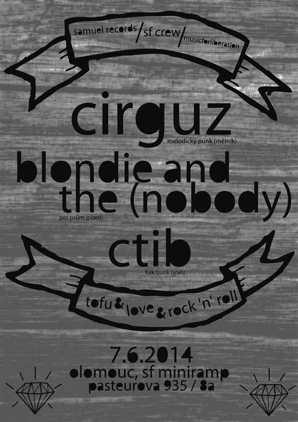 Po koncertní pauze se razantně těšíme na nadcházející víkend. Na svědomí ho má především Samuel a tamní kolektivy. K tanci a poslechu zahraje dost rozmanitá směska jejíchž společným znakem je záliba v podzemním punku. Nemá cenu to nějak víc rozebírat, pěkný pozvánky jsou k přečtení na http://periferia.cz/clanky/patecni-mejdan-u-vocka-v-opave-1097/ a http://musicforliberation.com/koncerty-kvetencerven/. V Opavě máme premiéru a premiéru s potulnym zablešenym a zpitym cirguzem má i náš úspěšnej maturant Vojta Masojídek. Je to kluk šikovná. V Olomouci si zahrajeme po necelejch pěti letech. Jestli nebudete mít o víkendu co dělat, přijďte se mrknout, bude to nářez jako pes!