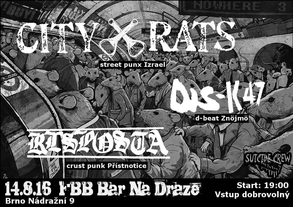 City Rats - Parta Hc Punx z Izraele poprvé v Brně. Čekej smršt v duchu G.B.H a další podobných band. Venku nově split s Criminal State z Ruska