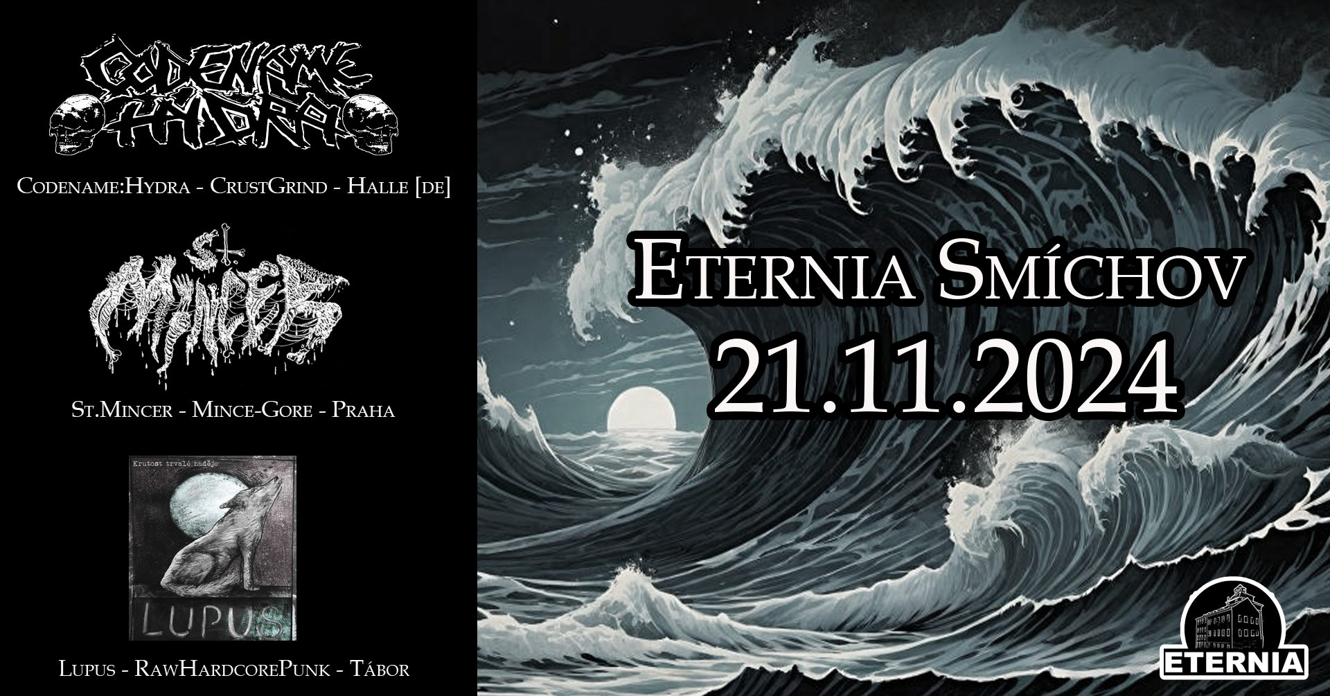 https://codenamehydra.bandcamp.com…Společně s nimi vystoupí groovy grinders - nebo taky politicky mince-gore-grindující smečka St.Mincer. Parta je to dobře známá, aktivní a zkušená. Blast beat sypačky střídají nejen houpavý pasáže, kde se zlomíš v pase ale i gore-polka tanečky. Bude veselo.