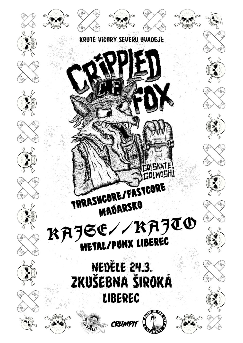 Na konci března do Lbc zavítají po čtyřech letech maďarští fofr thrasheři Crippled Fox. Od poslední návštěvy se stihli rozpadnou, znovu dát dohromady, trochu pozměnit sestavu a vydat ňakou tu placku, tak se přiď mrknout jak jim to dnes sviští. S nimi si zahrajou místní metalpunx Kajse//Kajto.