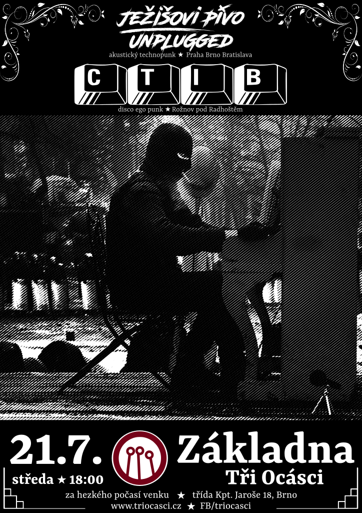Třeba takový CTIB se kterým nás pojí víc než jen muzika: na provozu rožnovského kooperativního klubu Vrah se podílel v době, když ještě někteří z Ocásků ani netahali pomyslného kačera. V hudbě má na svědomí množství skvělých punk-rockových kapel, za všechny třeba Co-Ca, Telefon nebo aktuální Chorobopop, ale taky hiphopový projekt Výbor veřejného blaha. Toto všechno se promítá i do jeho sólové tvorby, která začínala klasickým písničkářstvím se španělkou, ke které se postupně přidávaly pořád lepší beaty... Až to skončilo u současného disco punku, kde už kytary není třeba a Ctib se může soustředit jenom na energii, kterou vám tepe do těla a verše, které se napevno zavrtají do hlavy. https://ctib.bandcamp.com/ https://www.facebook.com/CTIB-102536858217298/