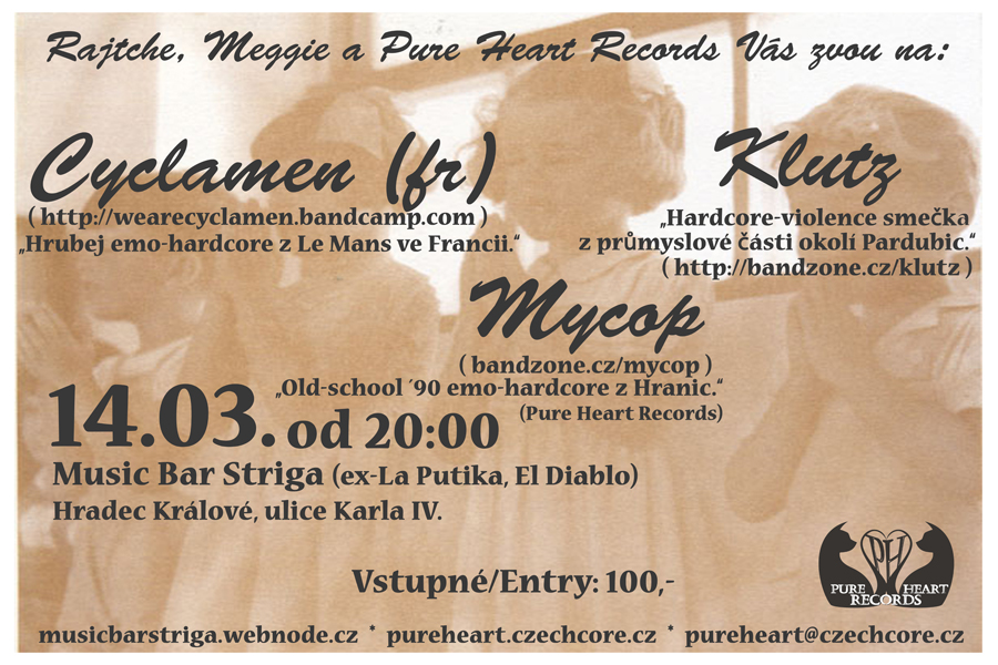 - Old-school '90 emo-hardcore ze 4/5 z Hranic a 1/5 z Hradce Králové, v brzké době s novým 7" na Pure Heart Records.