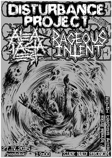 RAGEOUS INTENT /Madrid, Španielsko/ - staroškolský grindcore hráčsky prepojený s Disturbance Project fungujúci od roku 2011. Vydané splity s Greed, Crisischrist a Final Cunt.