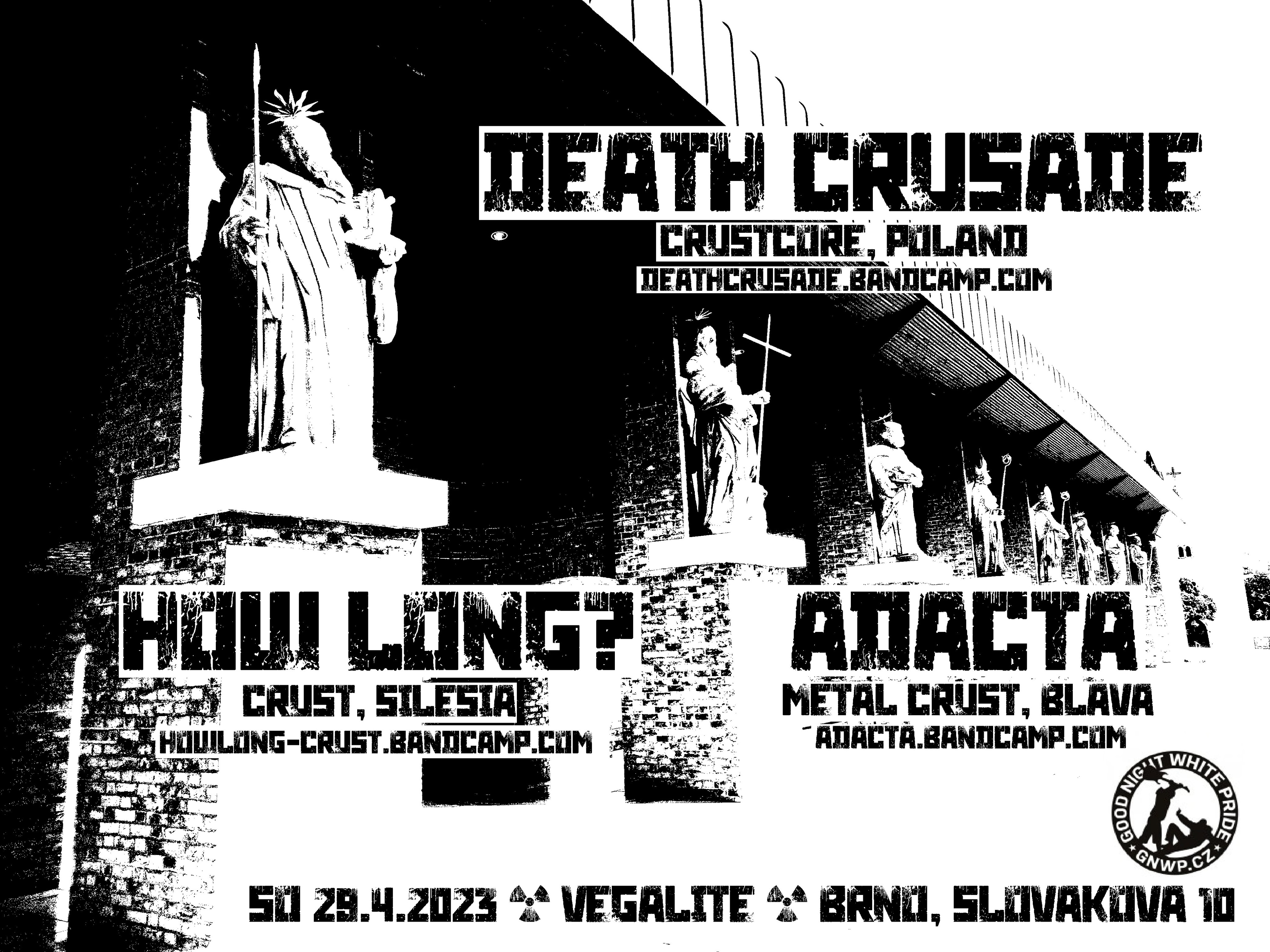 DEATH CRUSADE - crustcore v duchu DISRUPT s blast beat výjezdy a brutálním metalovým zvukem od ostřílenejch matadorů gdaňského crust/metal/punk podsvětí a kapel jako FILTH OF MANKIND, ENOUGH! nebo PUTRID EVIL. přivezou i nový album "Zn​ó​w p​ł​onie niebo".