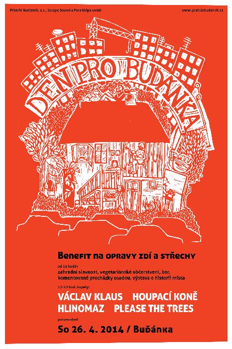 V sobotu 26. dubna proběhne v pražské památkové zóně Buďánka další ročník zahradní slavnosti Den pro Buďánka, tentokrát spojené s benefičním koncertem, jehož výtěžek podpoří organizaci Přátelé Buďánek, především pak opravu chátrající střechy. Krom kapely Please the Trees, která je jedním z iniciátorů celé akce, vystoupí i ústecká formace Houpací Koně, přažští Hlinomaz a Václav Klaus.