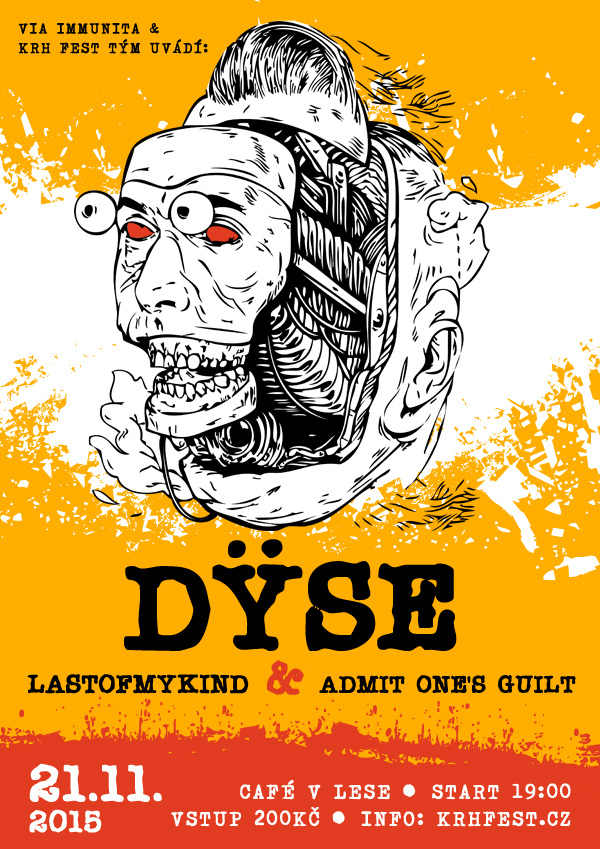 Nestavíme hodinky, chceme tě jen pozvat na další koncert Dÿse. Bratři v černobílim sešívanym triku, jak se i u nás už tolikrát představili, maj letos po sadě turné s aktuální deskou Das Nation (2014, Cargo rec.) ještě pár koncertů doma v Německu a chystaj se i k nám. Baví mě minimalismus, jako životní princip, baví mě hardcore i punk, baví mě hravost novýho cirkusu. Čili naprosto miliju muziku Andreho a Jariho. Vidím je jako ideální duo pro muziku k nějakýmu představení punkovýho novýho cirkusu. Co je nejlepší - oni by vůbec nemuseli dělat doprovod, ale mohli bejt přímo v manéži. Už to bude skoro deset let, co jsme poprvé mlátili hlavou do rytmu hitu Monstermann z debutového eponymního alba uprostřed Tábora na Free Dim Festu (2007). Nový songy, zvlášť pak Supermachineeyon, z druhého elpíčka Lieder Sind Brüder Der Revolution (2009, Exile on Mainstream) během KRHfestu málem zbouraly foyer prvorepublikové sokolovny v Hostivaři. Pak každej rok koncerty buď s náma nebo Hluch crew. Loni konečně další deska, kterou nám vypiplanou dovezli na Strahov na Sedmičku. Čili dlouhej příběh... Letos se manéží stane vršovické Café v lese v sobotu 21.11. Dál jsme pozvali instrumentálku Lastofmykind, kapelu která mi neuvěřitelně evokuje Diario, někdejší stájové kolegy Dÿse z labelu z Exile on Mainstream. V rámci cyklu "Ještě jsme tady" večer otevřeme s Admit One's Guilt. Koncerty přeplněný podzim tedy bude krásný. Čekáme tě!