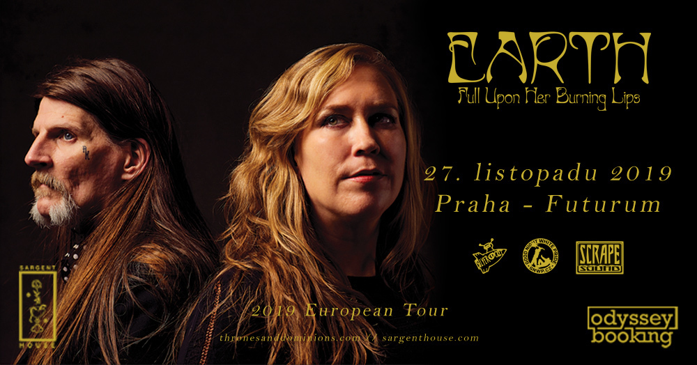 Není moc současných kapel, které obklopuje podobně silná aura výjimečnosti. Earth se po dlouhých sedmi letech vracejí 27. listopadu do Prahy: ve smíchovském Futuru představí nové album „Full Upon Her Burning Lips“! Kultovní kapela, kterou založili v roce 1990 v Seattlu nenapodobitelný kytarista Dylan Carlson a Slim Moon, zakladatel labelu Kill Rock Stars, na něm nabízí dokonalou esenci svého zvuku: meditačně pomalé a zároveň do posledního detailu promyšlené skladby, jejichž hypnotický výraz rámuje Carlsonova kytara a tradičně úsporné a soustředěné bicí Adrienne Davies.