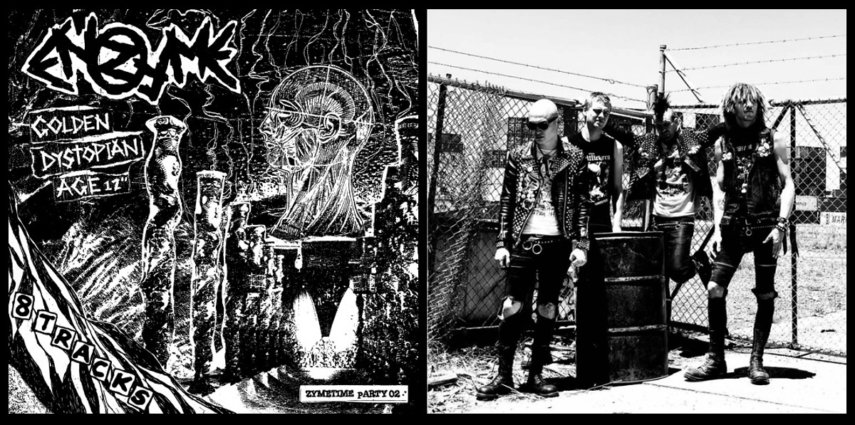 Prozatím poslední deska od ENZYME z Melbourne je venku Od Července minulého roku, jde o druhé album ,,Golden Dystopian Age" absolutního výsypu noise crustu, pocta Japonským GAI, něco pro ty kdo tohle mají rádi. Na kytaru hraje Yeap (Hardcore Victim label), zpěvák z Pisschrist, Kromosom, Abc Weapons atd... Co vás čeká, šílenost! Basu obsluhuje (ne u všech nahrávek) Ryan Barclay člen mnoha kapel, včetně jedné evropské Absolute Order, kterou založil s dalšíma anglo/americkými členy poté co žil již poměrně dlouhou dobu na squatech ve Španělsku a Německu, pravděpodobně ho budete znát... Mají nachystáno v Červnu některé koncerty/turné v Evropě, zkus jejich poslední album na bandcampu vydavatelství Hardcore Victim. Mrkni na jejich video z Manic Relapse Festivalu z ulice Oaklandu.
