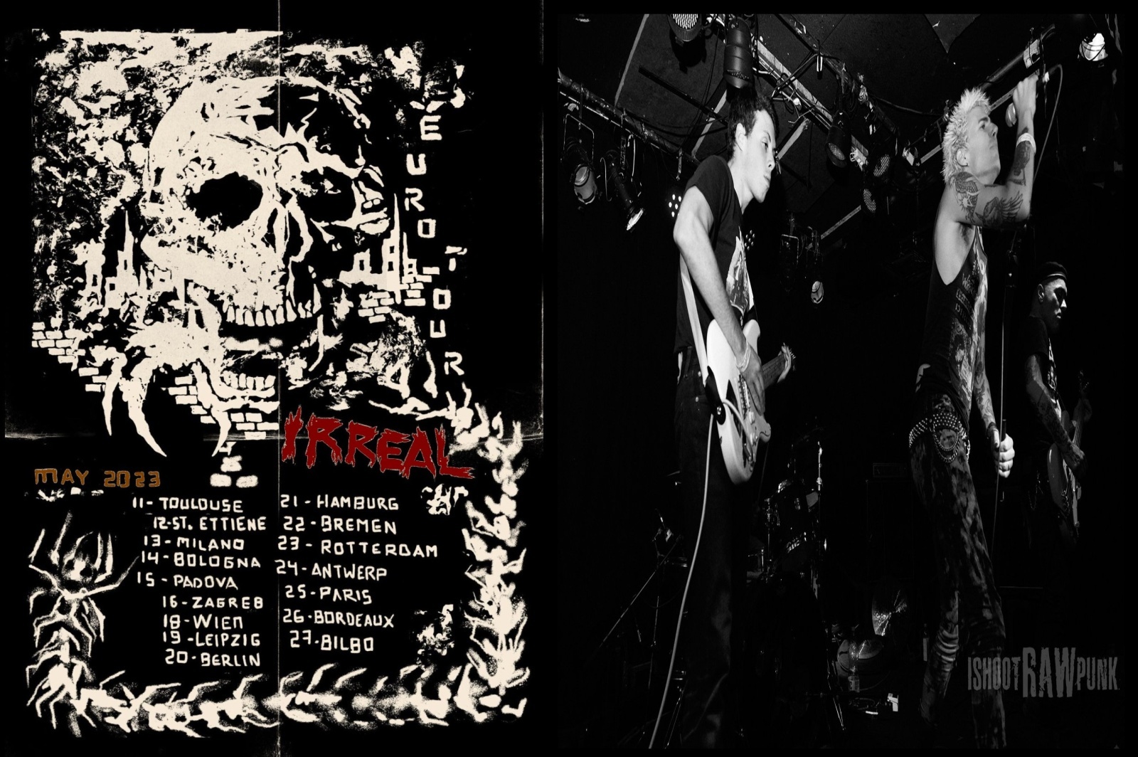 Z teplých krajin zavítají rozdrtit nejedno publikum, tahle vynikající banda IRREAL raw punk z Barcelony. Všechny nahrávky jsou zatraceně skvělí, včetně druhé velké desky desky Era Electronica z minulého roku, kde bych hlavně vypíchnul skladbu ,,Prensa Maldita" tohle je ultra velká pecka. Aktuálně jedna z nejlepších kapel současnosti. Mrkni na krátkou recenzi z MRR. Turné na květen mají domluvené, těšme se na jejich další koncert! Na živo zatím nikdy nezklamali, je to jízda jako sviň, leták jejich turné vytvořil zpěvák Arturo. Zkus jejich živák z Festa Caos A Gracia. Poslech jejich starších nahrávek je možný na bandcampu kapely.