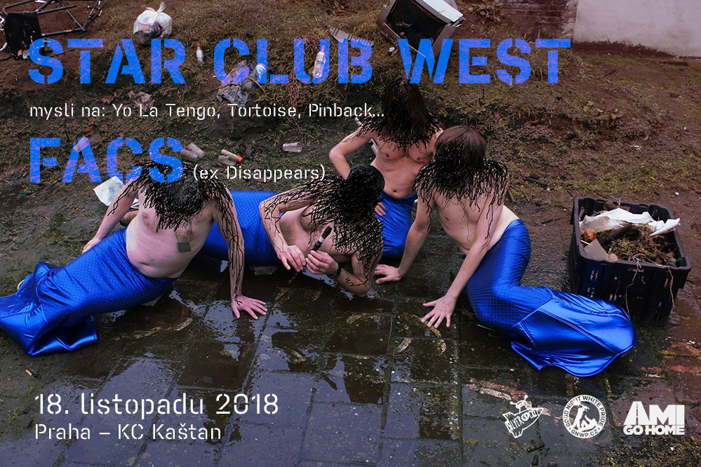 Star Club West sem chceme dostat už skoro 10 let. Zhruba tou dobou jsme se totiž seznámili s Chrisem, kytaristou živý podoby Paramount Styles. Jestli Chrise znáte, tak to víte; jestli ale ne, tak vězte, že to je jeden z nejhodnějších lidí a nejšikovnějších kytaristů široko daleko. Každý úterý se scházejí s kamarádama z Antverp na zkoušce kapely Star Club West, která v tichosti a poklidu vydává naprosto vynikající desky, vzdáleně připomínající třeba Yo La Tengo, Pinback nebo Tortoise. Praha je v plánu 18. listopadu v Kaštanu a zahrajou i Facs, což je nová kapela členů Disappears: sugestivní a od všeho zbytečnýho osekaná pulzující hudba na pomezí minimalismu a post punku made in Chicago.