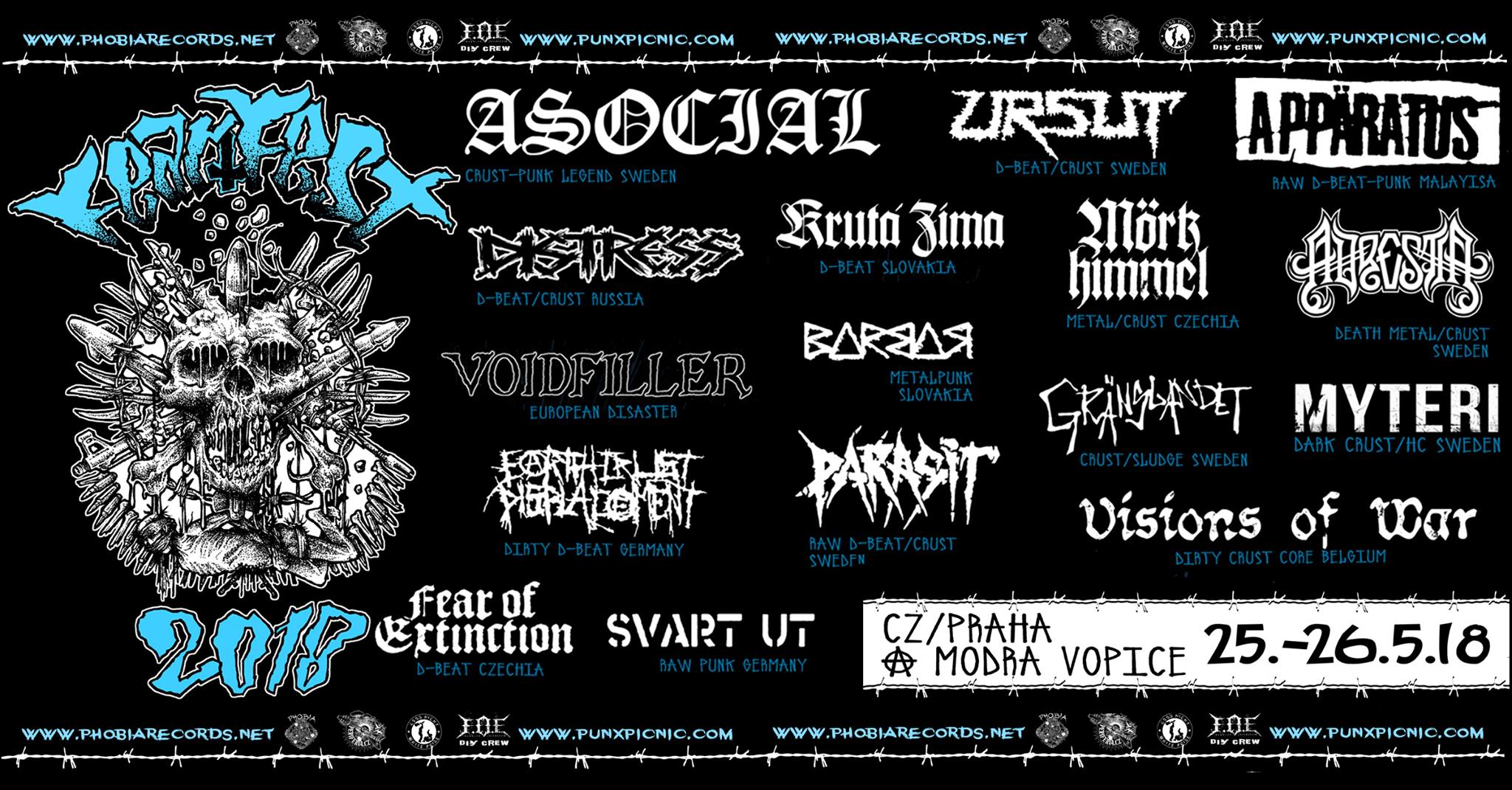 Na Phobia Records byl spuštěn předprodej e-ticketů / voucherů na letošní Fear Fest 2018 (aka Punx Picnic) byl spuštěn. Do konce března jsou lístky za sníženou cenu. Vytištěným voucherem se prokážete na vstupu letošního Fear Festu 2018 (kde obdržíte na památku samozřejmě i vstupenku). Těšit se lze na ASOCIAL (Švédsko), URSUT (Švédsko), MYTERI (Švédsko), FEAR OF EXTINCTION (CZ), atd ... více na punxpicnic.com.