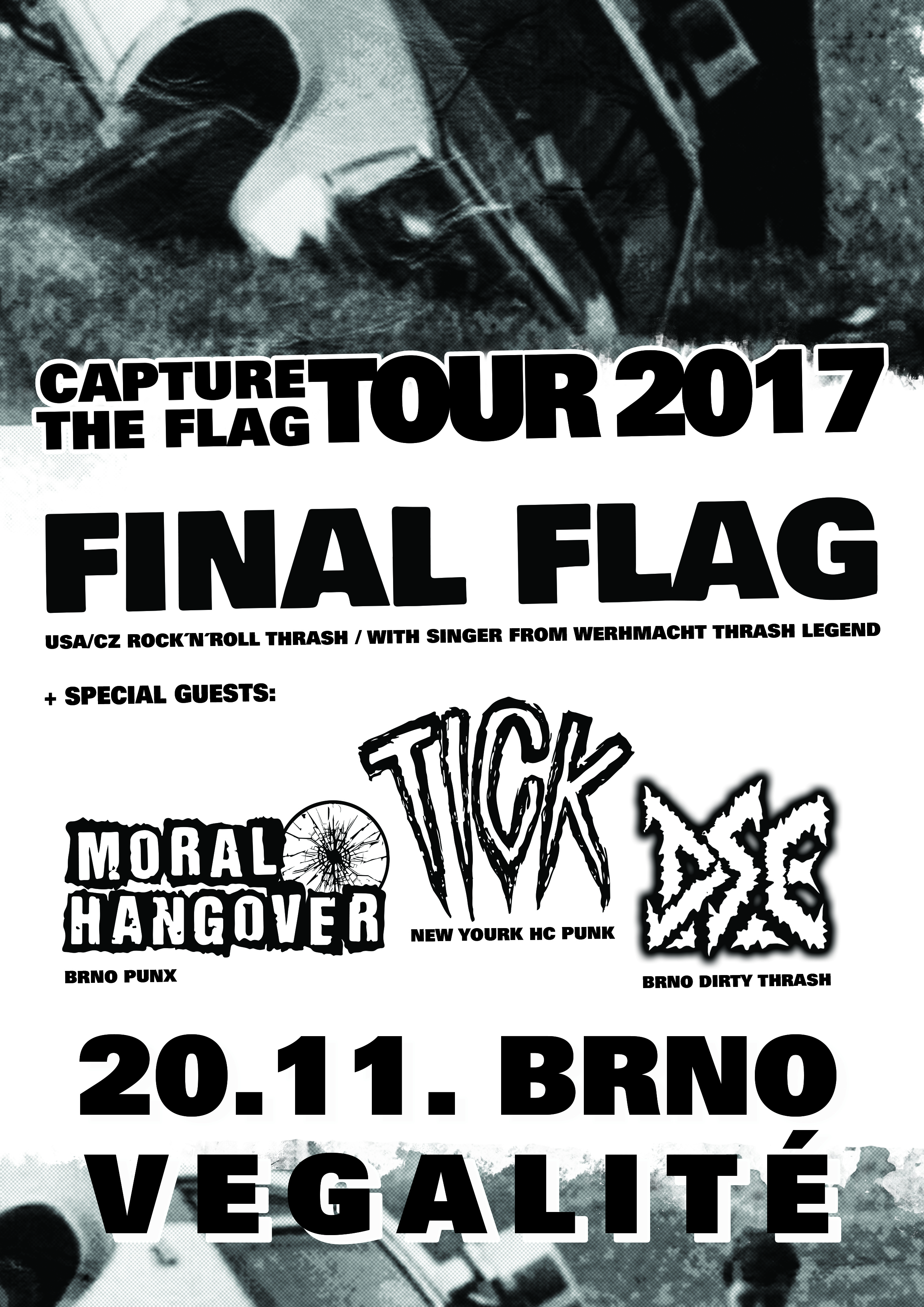 bude to jízda! Jak to vypadá na živo, když se v jedné kapela srazí Eric Helzer (zpěvák z thrash metalové legendy Werhmacht), Tomáš "Skoří" Skořepa (Exorcizphobia) a Jíří Panter Rosa (Tortharry) se mužete přesvětčit v listopadu ve Vegalité kde zahrají se svým projektem FINAL FLAG.