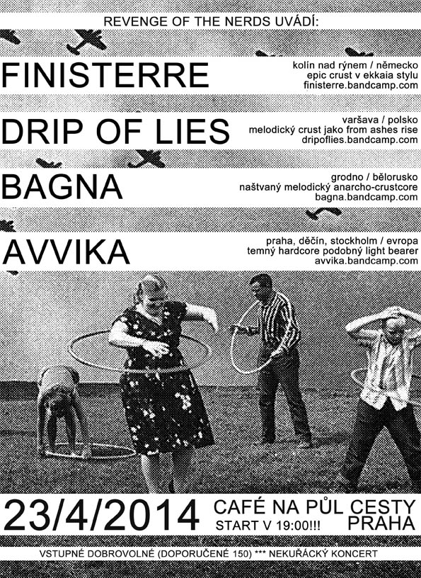 AVVIKA (Praha/Děčín/Stockholm) - temný atmosferický hardcore ve stylu LIGHT BEARER apod. AVVIKA bude čerstě zpátky z desetidenního tour, takže budou pěkně rozehraní.