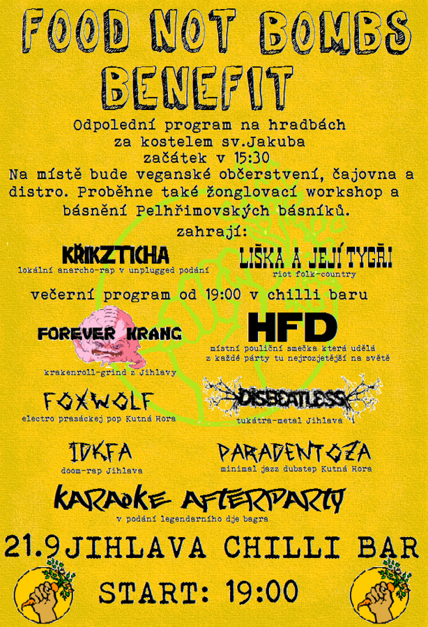 FOOD NOT BOMBS BENEFIT 21.9 Jihlava Chilli bar