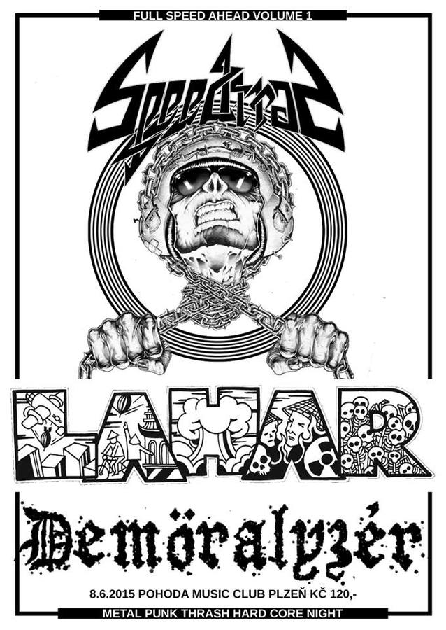 LAHAR – Asi není nutno představovat. Thrash metal s punk hardcore feelingem Jižní Čechy. Od svých počátků roku 2002 se kapela přetransformovala od fastcore k ryzí podobě thrash metalu. Za mikrofonem Iny (Gride, Radiolokátor), na postu baskytary Tom (ex- Grex, ex- Mururoa). Za 13 let působení na scéně mají na svém kontě dvě dlouhohrající desky, 6 splitů a Epéček a jedno demo. Momentálně se maká na novejch věcech. THRASH (Doomentia rec.)
