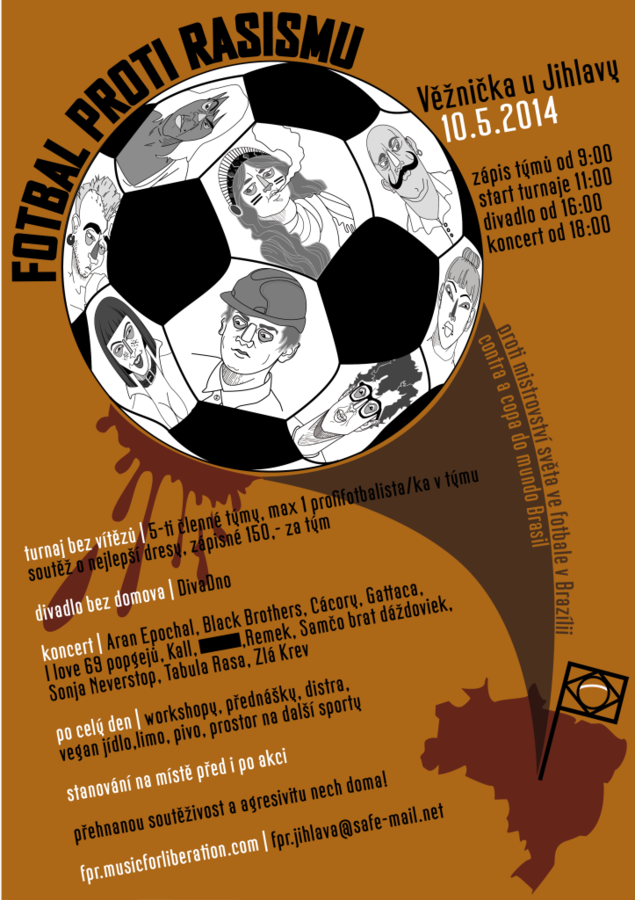 Program se ještě může měnit, sledujte náš web… - Registrace do fotbalového turnaje od 10:00 do 11:00 - Zápisné na tým 100 Kč, vstup na koncert 100 Kč (pro fotbalisty/fotbalistky je vstup na koncert 50 Kč) - Hrát se bude pravděpodobně v 5 lidech - Letos opět vyhlašujeme soutěž o nejlepší dresové převleky, ve kterých budou týmy hrát – bude to jediné první vyhlášené místo ;) protože! - fotbal a celý den je sranda a zábava, chceme se sejít a vzájemně se obohacovat, přehnaná soutěživost nebo agresivita není vítaná!