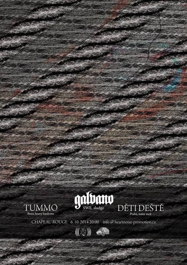 První říjnové pondělí vyplaví sklepení Starého Města jménem Chapeau Rouge velká voda a přinese s sebou trochu kvalitního jílu až ze Skandinávie. Odčerpávat se však rozhodně nebude! Naopak bude pod taktovkou švédských sludge-metalistů Galvano a domácího svinstva Tummo a Děti Deště nános jenom přibývat. Vstupné do těchto netradičních podzemních bahenních lázní je dobrovolné. Pro Galvano jde o první koncert v Čechách a Tummo i Děti Deště se v Praze zrovna často nevyskytují. O důvody víc!