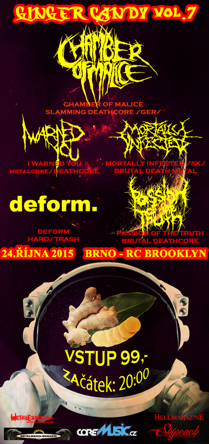 V sobotu 24.října 2015 se v brněnském underground klubu č.1 Brooklynu uskuteční další pokračování vypečené akce s názvem GINGER CANDY. V pořadí již sedmé pokračování nám nabídne velmi kvalitní squadru kapel. Pojďme se tedy podívat, co nám pořadatel přichystal za lahůdky..